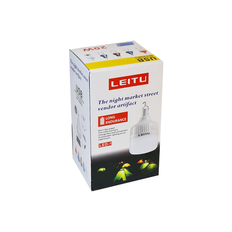 لامپ LED شارژی LEITU 20W شارژی با باتری داخلی 2000 میلی آمپر دارای 16 LED درونی 4 حالت دوردهی قابلیت تنظیم نور در 3 شدت چراغ خطر چشمک زن ( SOS Light ) 6 تا 12 ساعت نوردهی با هر بار شارژ کامل دارای گیره فلزی آویز قابلیت شارژ شدن بوسیله پاوربانک یا برق مستقیم درگاه MicroUSB شارژ (اندرویدی) کیفیت ساخت عالی جنس بدنه بسیار با کیفیت 1 عدد کابل شارژ درون بسته بندی برای این لامپ جذاب