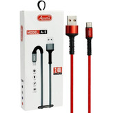 کابل Apama 369 مدل A5 مجهز به روکش کنفی ضخیم خروجی 2.4 آمپر قابلیت انتقال DATA با سرعت بالا سرعت شارژ بالا محافظ کانکتور مقاوم مقاوم به پارگی و کشیدگی طول 1 متر موجود در تایپ سی و لایتینینگ
