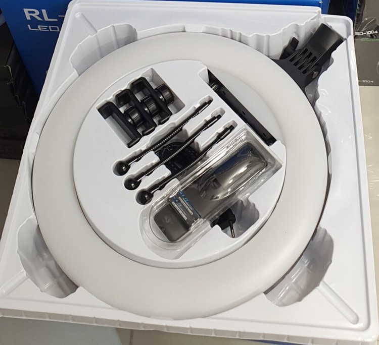 اقلام داخل محصول: رینگ لایت -سه پایه -ریموت کنترل -۳ عدد نگهدارنده موبایل -کابل برق .دو عدد باطری